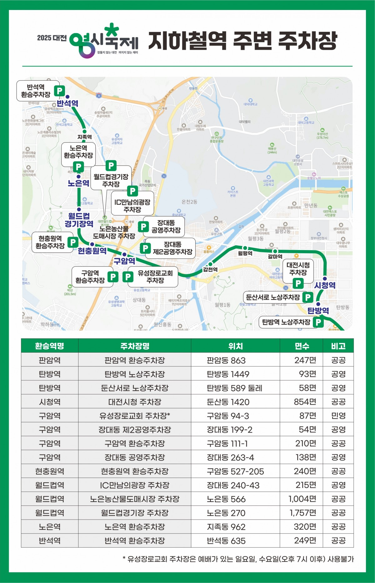 이를 보완하기 위해 대전시는 순환 셔틀버스를 운영하고 있으며, 주요 거점(대전역, 충남도청, 성심당 등)을 경유합니다. 또한 대전 지하철은 연장 운행되며, 일부 버스 노선은 우회 운행됩니다. 축제장 내에서는 자전거, 킥보드 등 개인형 이동 수단도 통제되므로 반드시 도보나 대중교통을 이용해 주시기 바랍니다.
