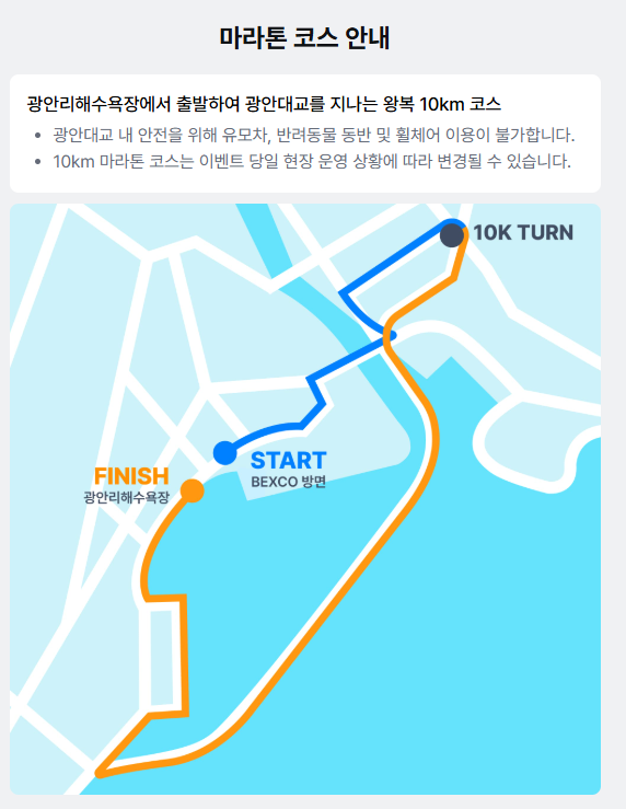 | 코스 | 총 10km, 광안대교 야경 포함 |
