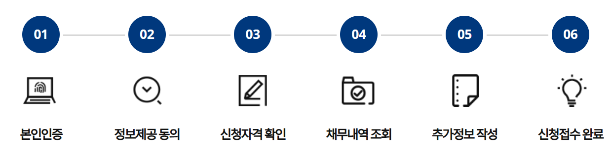 - 본인 인증하고 → 자격 확인 → 빚 정보 확인