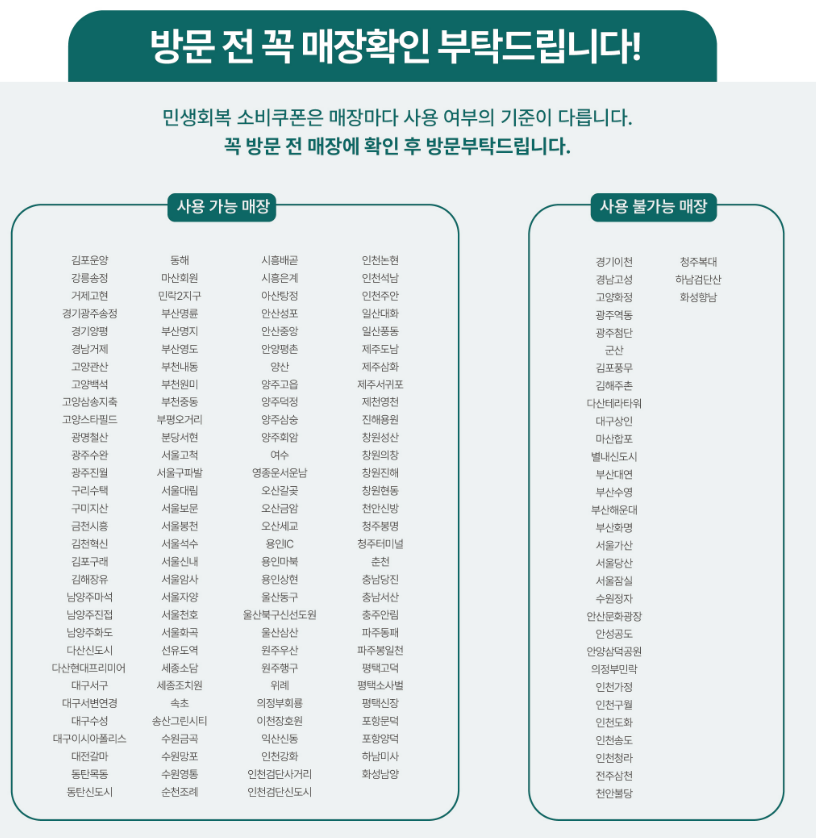 - 민생회복 소비쿠폰은 소상공인 가맹점에서만 사용 가능