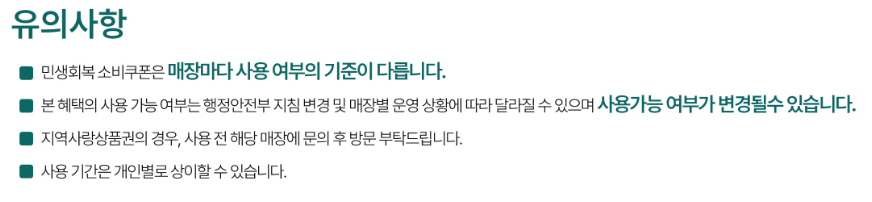 - 지역 제한 존재 → 거주지(시·군·구) 외 매장에서는 사용 불가