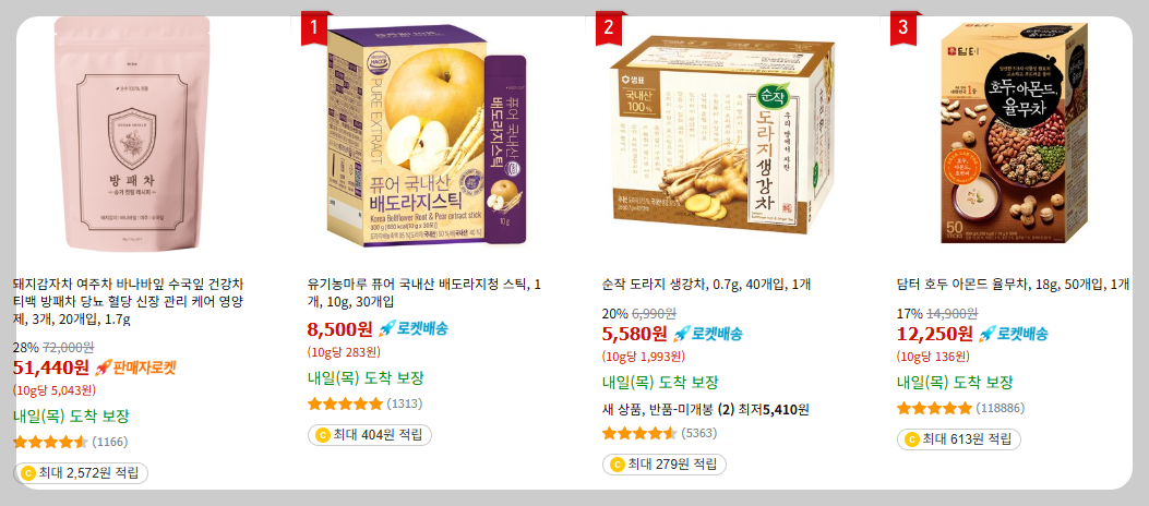 - 생강차, 대추차, 유자차, 루이보스차 등 건강차
