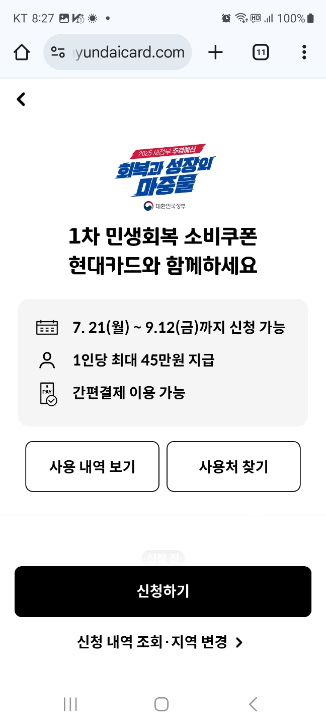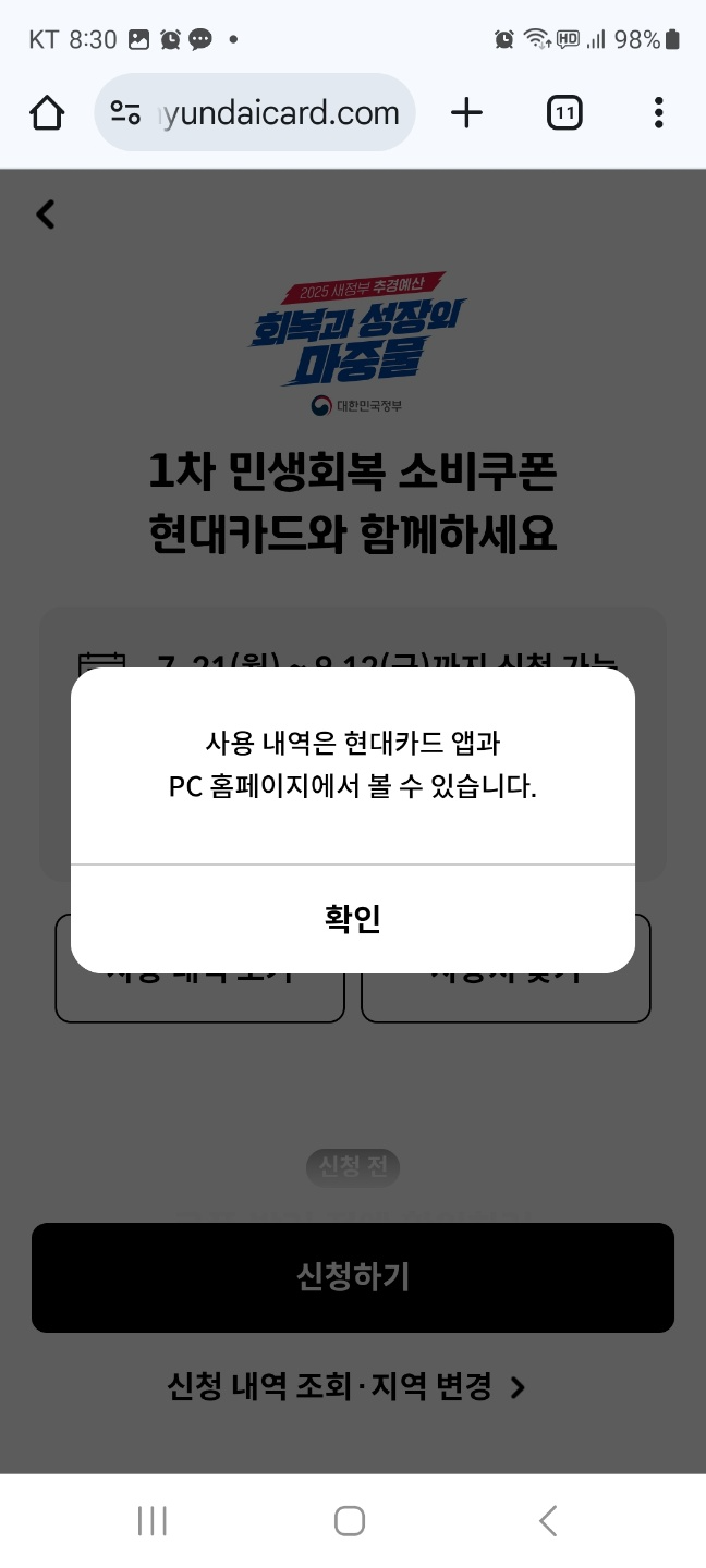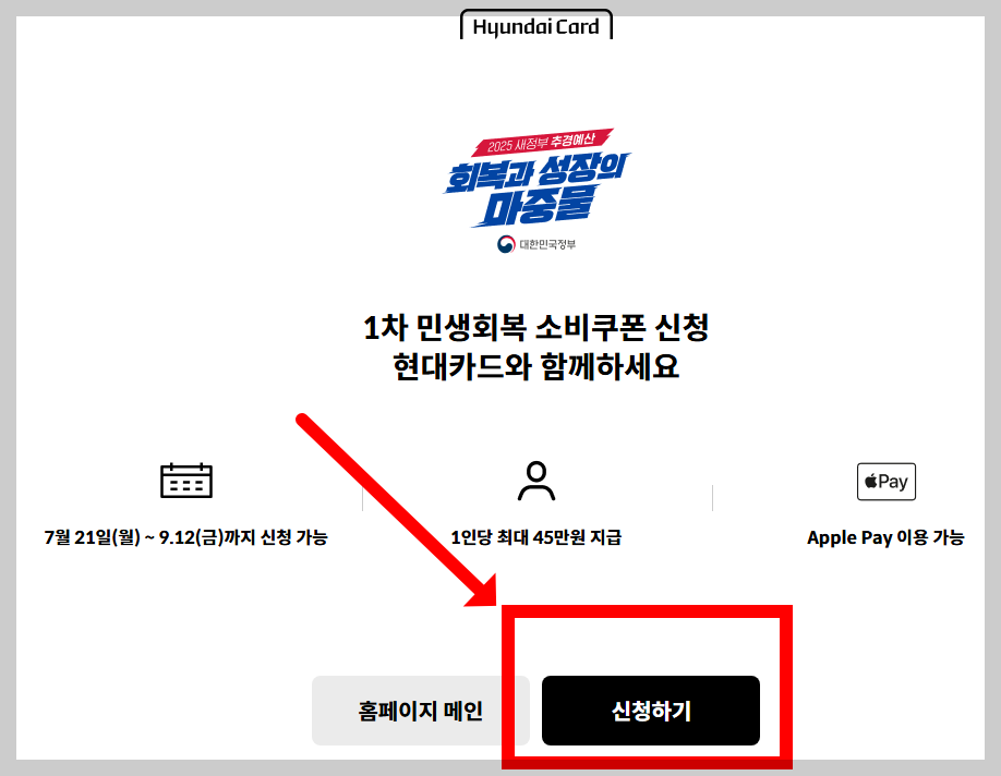 현대카드를 사용하고 계신다면, 지금 바로 민생회복 소비쿠폰을 신청해보시기 바랍니다.