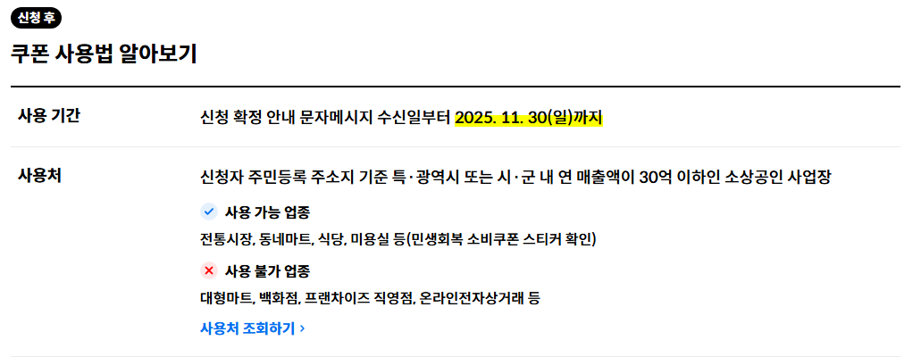"편의점에서 쓰려다 실패했어요. 주소지 기준 동네 음식점에서는 결제 잘 됩니다. 사용 전에 매장 주소가 내 주민등록지와 같은 시군인지 꼭 확인하세요."