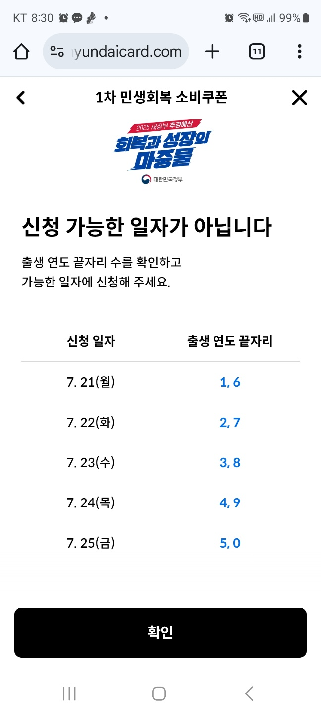 - 신청 첫 주(7/21~7/25)는 요일제로 운영되며 출생연도 끝자리에 따라 요일이 지정됨