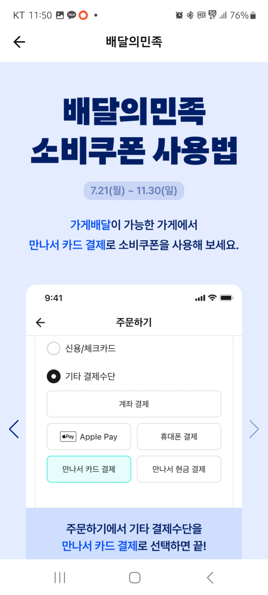 - 배달원이 단말기를 가지고 올 경우에만 카드 결제 가능